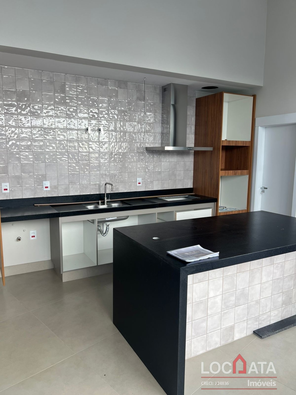 ÁREA DE LAZER COM CHURRASQUEIRA, PISCINA, WC E COZINHA.