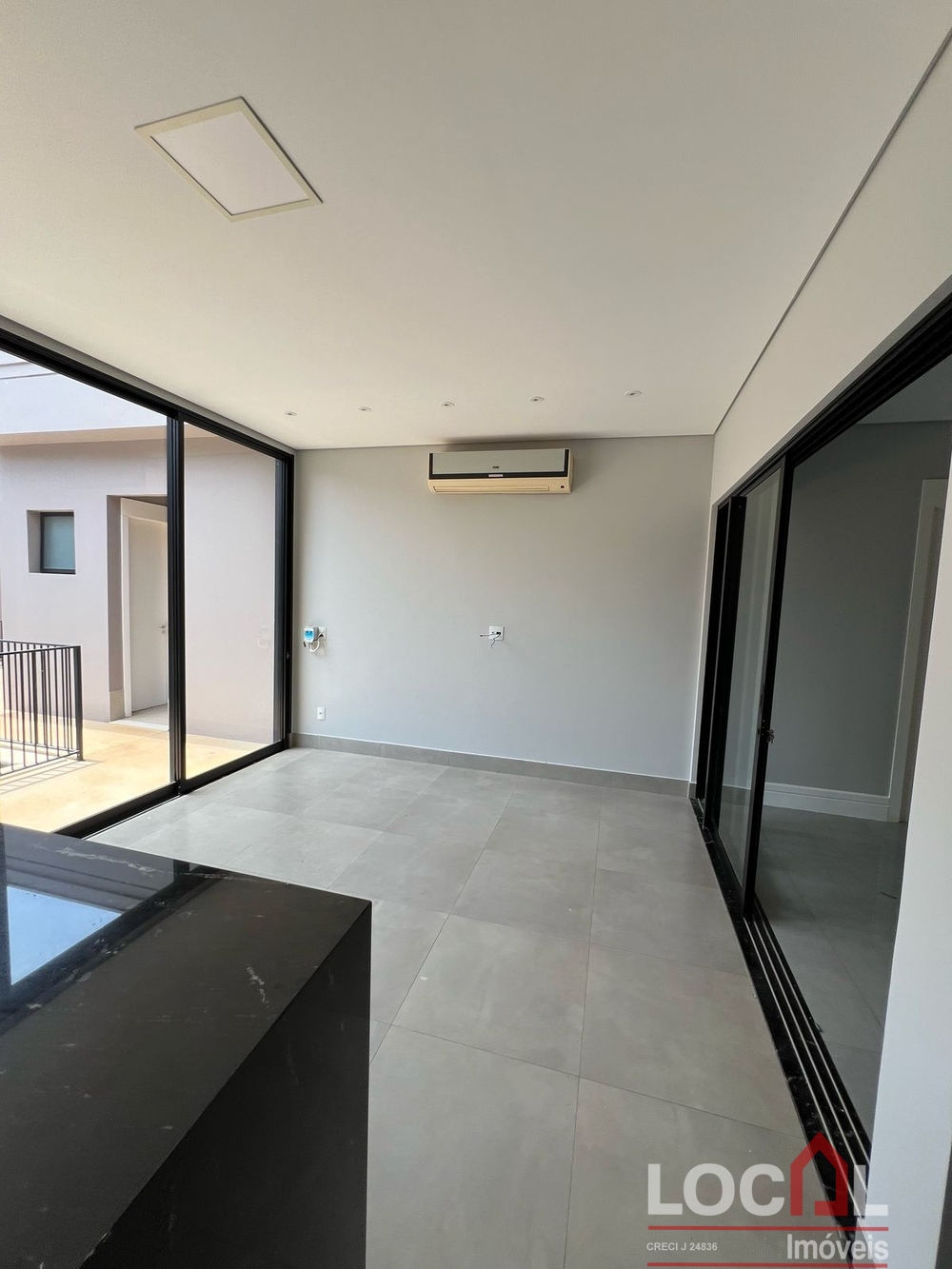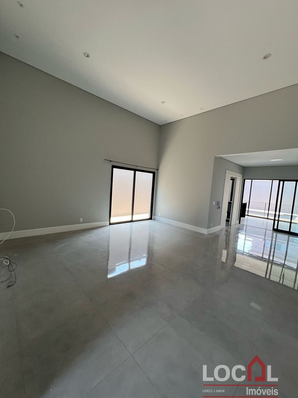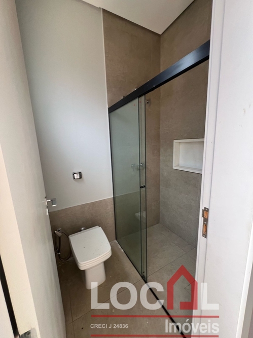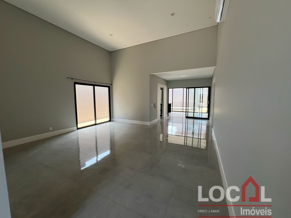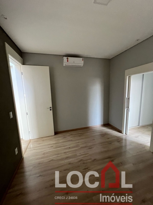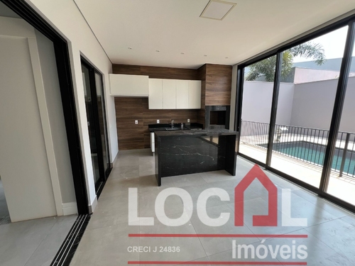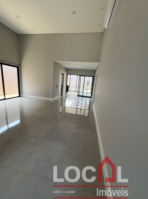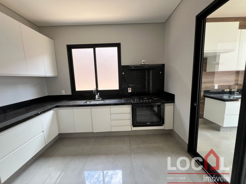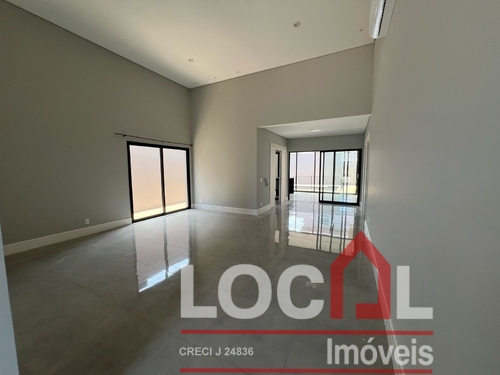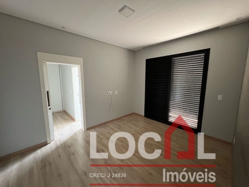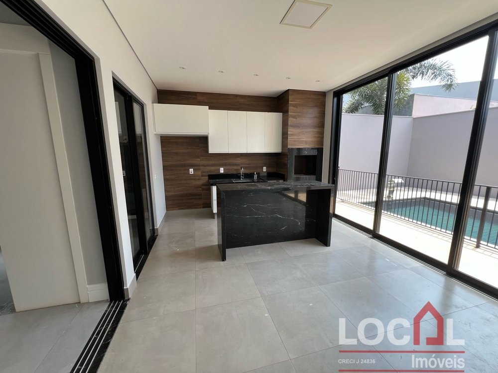 (CV-73) Hall; Living – Estar / Jantar (integrados); Lavabo; Office; 3 Suítes sendo 2 térreas e uma superior, todas com closet; Cozinha integrada com área gourmet (completas); Piscina e banho piscina; Área de serviço completa com banheiro; Garagem para 2 autos; Closets, banheiros, cozinha, área gourmet e área de serviço com armários planejados; Ares instalados.